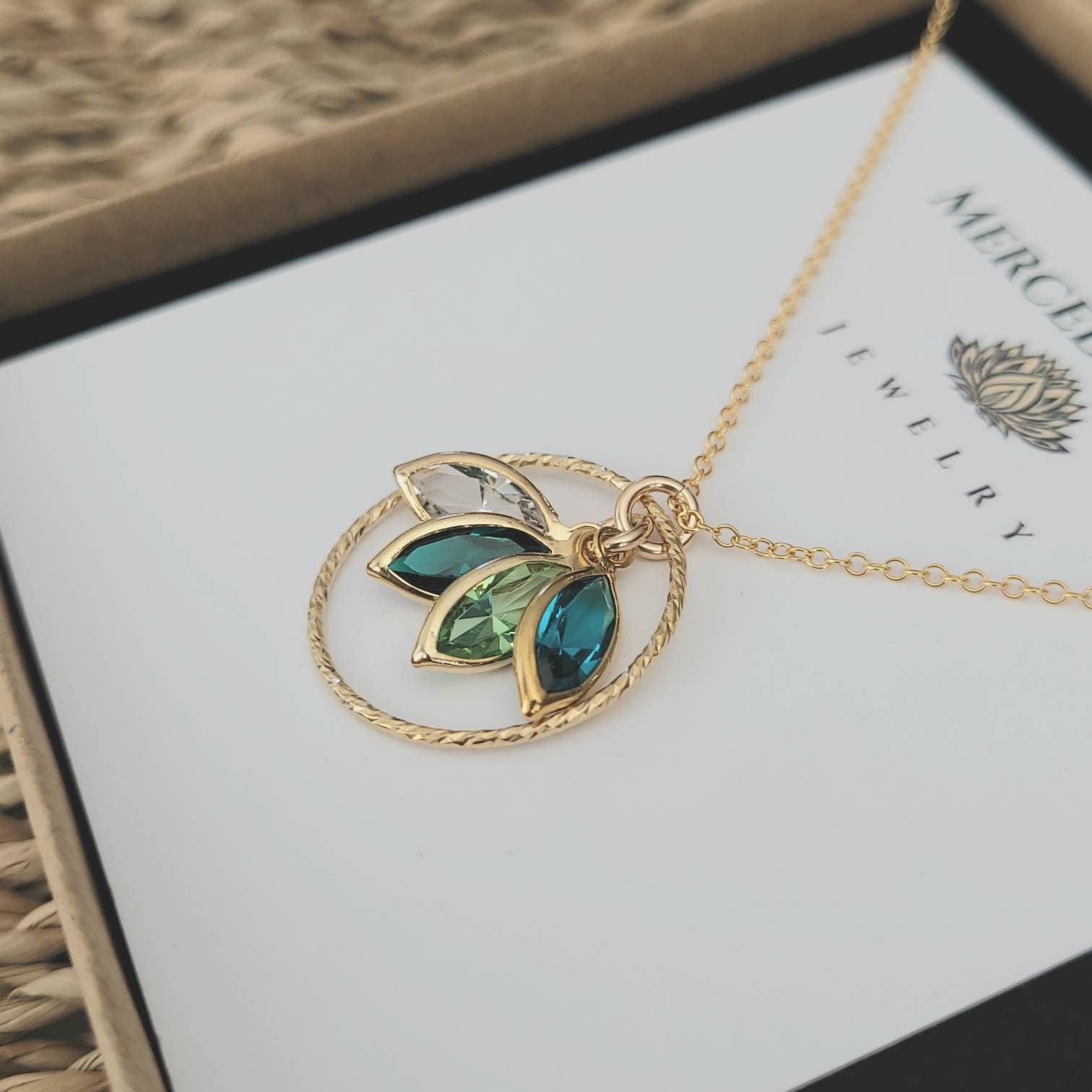 ~ Show your family love with this gorgeous family birthstone necklace featuring crystal birthstone charms encircled in a 14K gold filled textured circle.